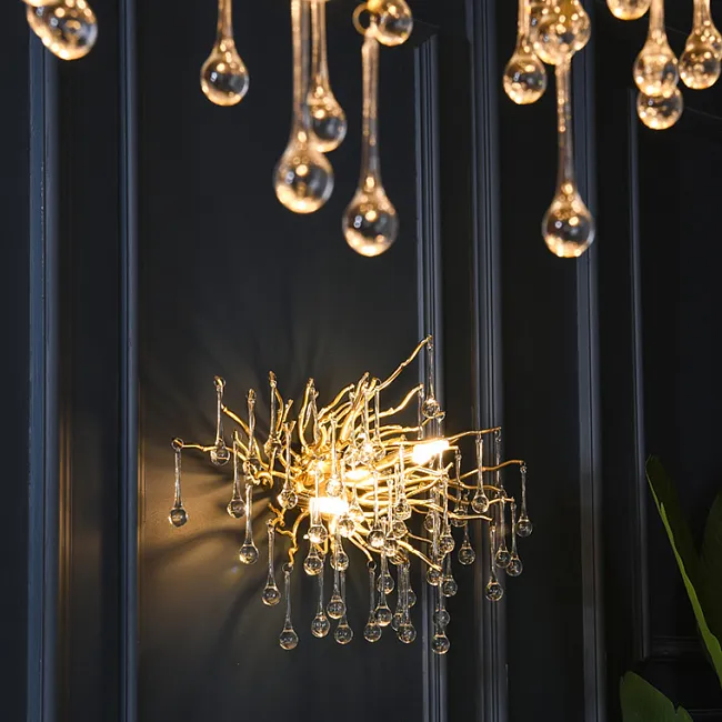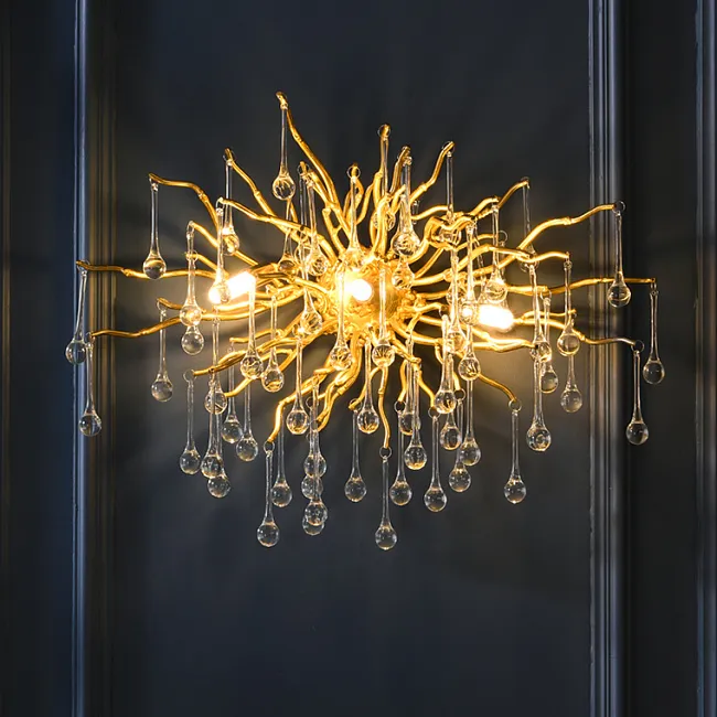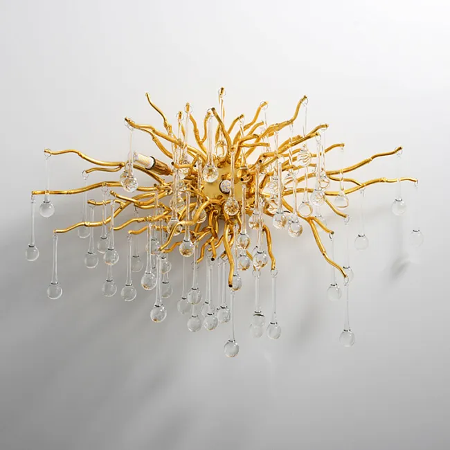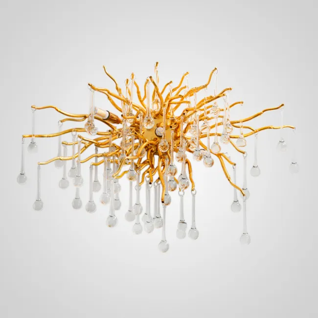 Настенный светильник с ветвистым каркасом и стеклянными каплевидными подвесками