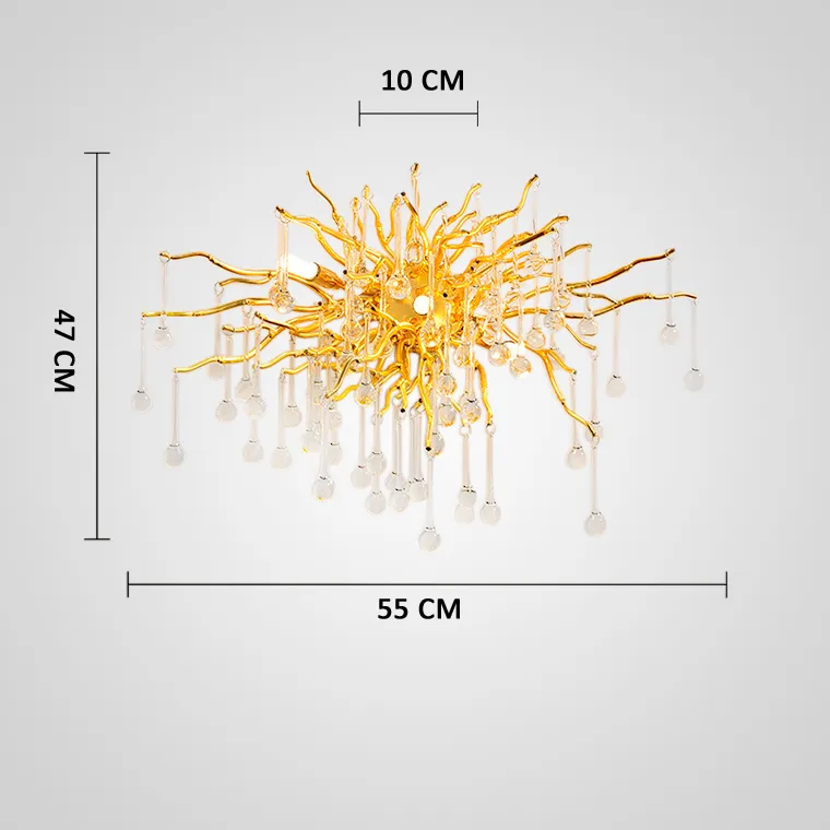 Настенный светильник с природным ветвистым каркасом и стеклянными каплевидными подвесками