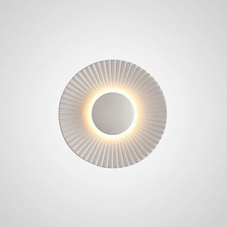 Погрузитесь в атмосферу изысканного дизайна с нашей эксклюзивной серией настенных светильников, выполненных в виде гофрированного диска с LED подсветкой. Эти потрясающие белые светильники, с диаметром 15 см, созданы из высококачественного металла и воплощают в себе чистоту и совершенство линий, повторяя фактуру античных скульптур.
