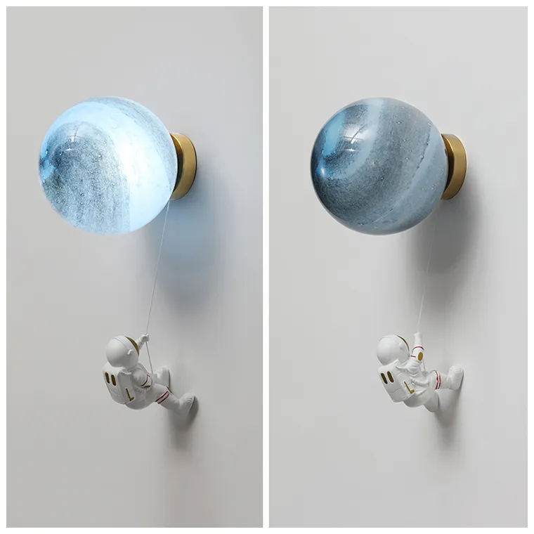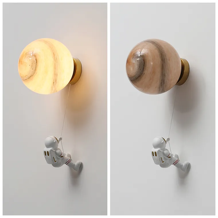 Настенный светильник шар с космической тематикой планет и фигуркой космонавта