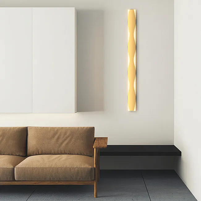 Серия светодиодных настенных светильников с удлиненным латунным корпусом и рельефной поверхностью с чернением