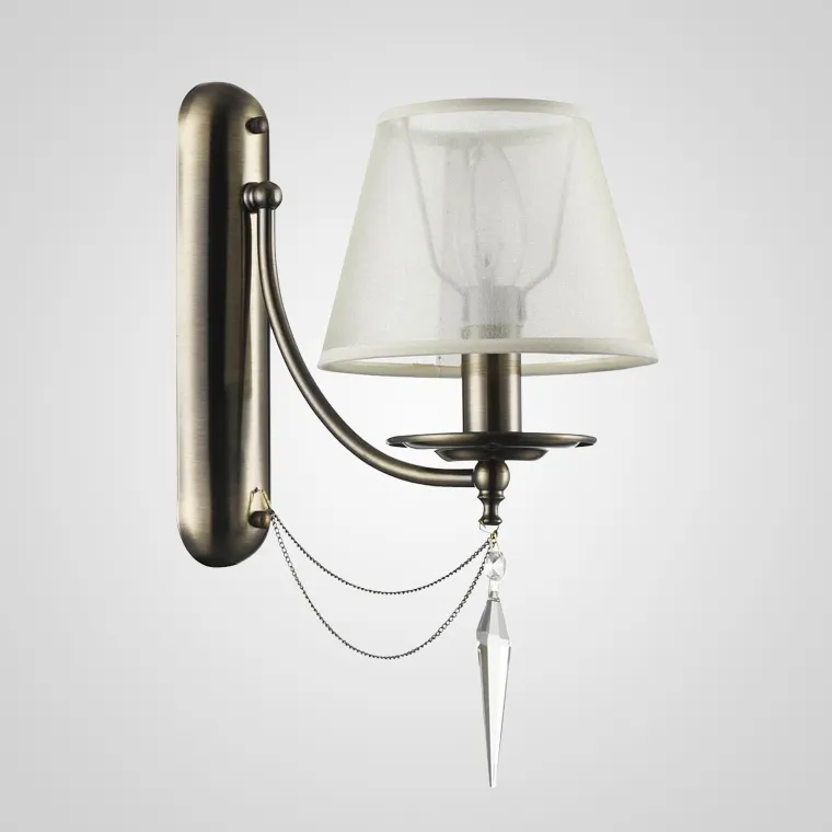 Настенный светильник с конусным текстильным плафоном с декоративными цепочками и кристаллом в центре