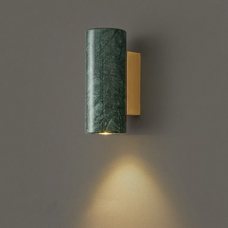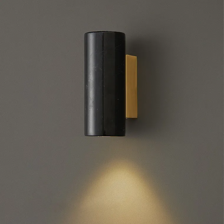 Серия настенных светильников с цилиндрическими плафонами из мрамора на прямоугольном креплении