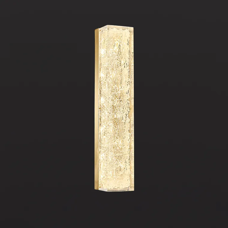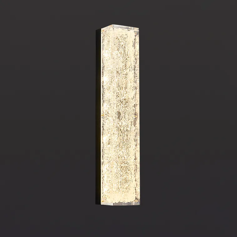 Настенные светодиодные светильники из нашей коллекции имеют эффектный полупрозрачный корпус прямоугольной формы, который напоминает лед. Они доступны в двух размерах: 9x33 см и вылет 9 см.