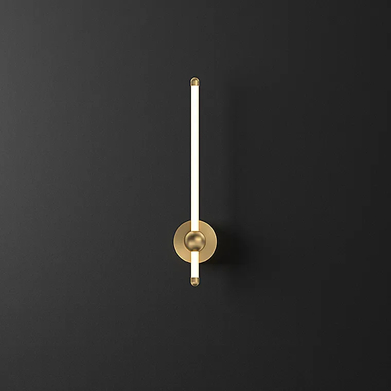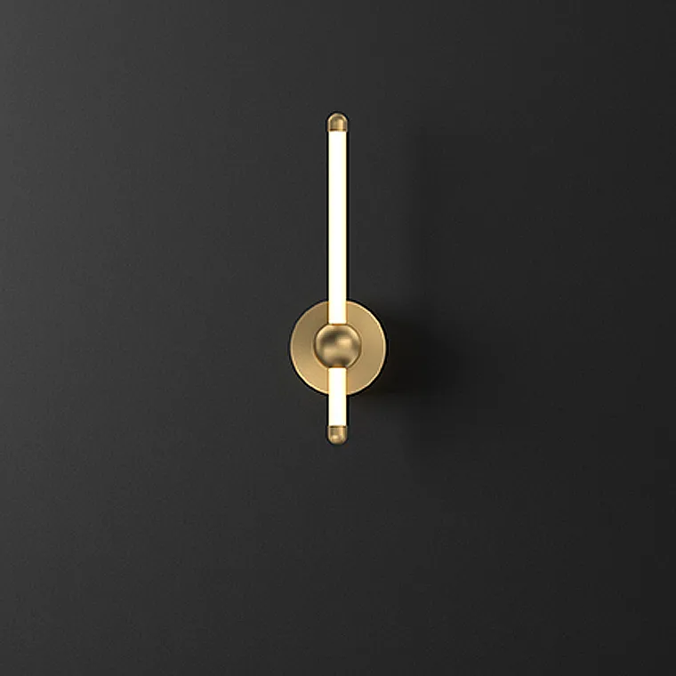 Серия настенных светильников с вытянутым цилиндрическим корпусом на круглом латунном крепеже