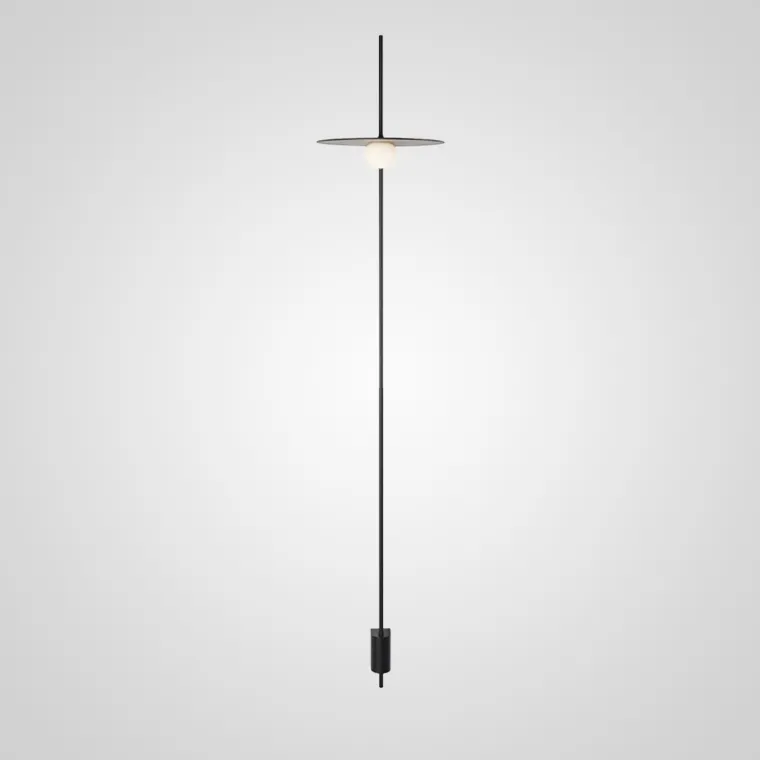 Настенный светильник с белым шарообразным плафоном из секла под дискообразным рассеивателем на кронштейне