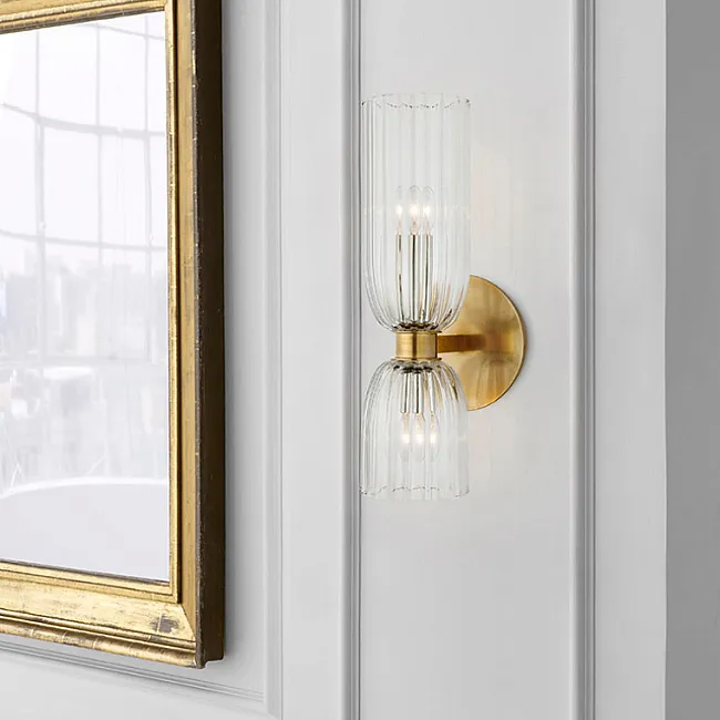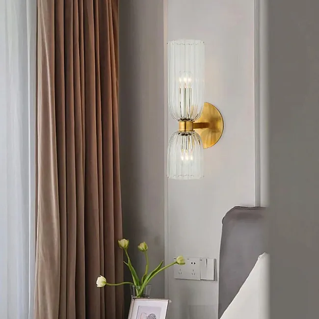 Настенный светильник с декором в виде хрустальных цветов и подвесок на металлическом каркасе