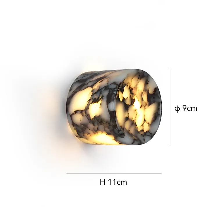 Настенный светильник цилиндрической формы из мрамора с характерным природным рисунком