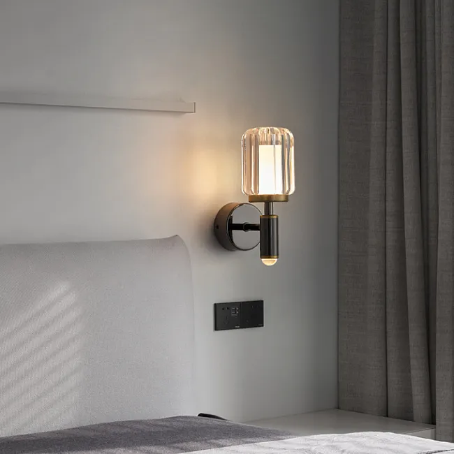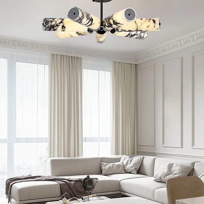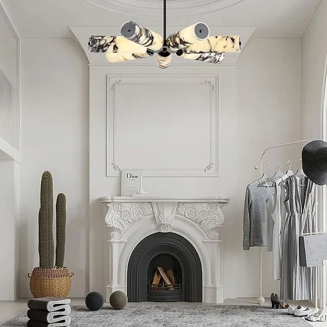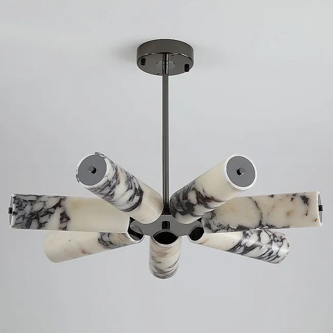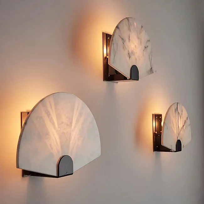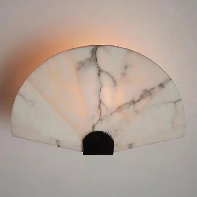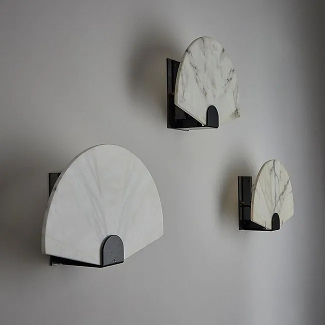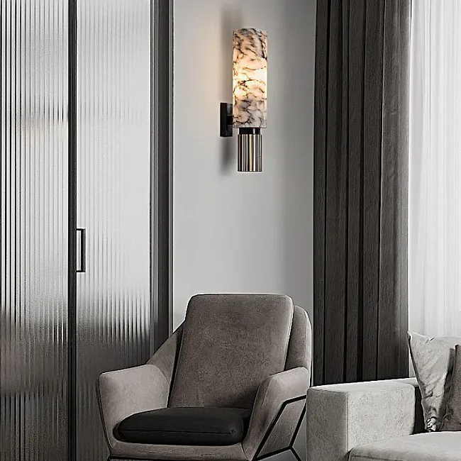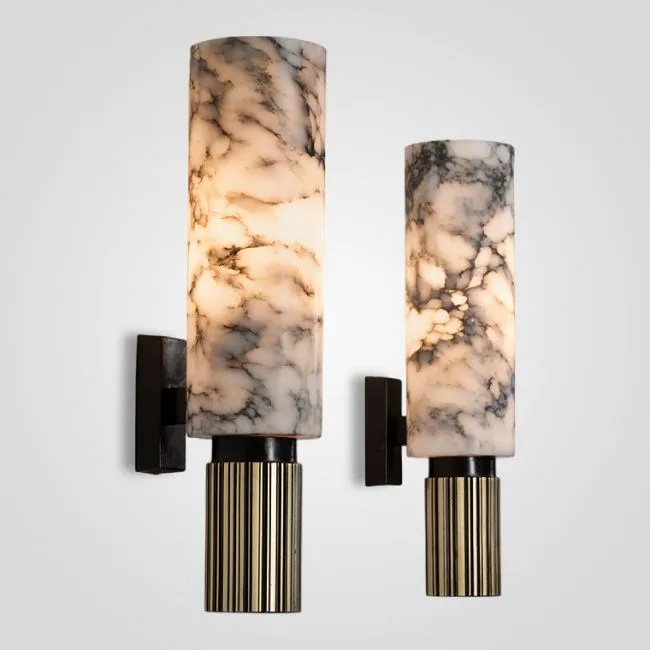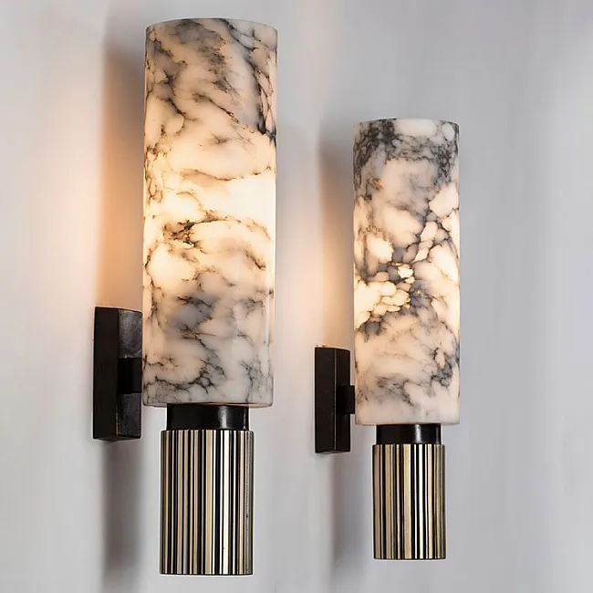 Настенный светильник цилиндрической формы из мрамора с характерным природным рисунком