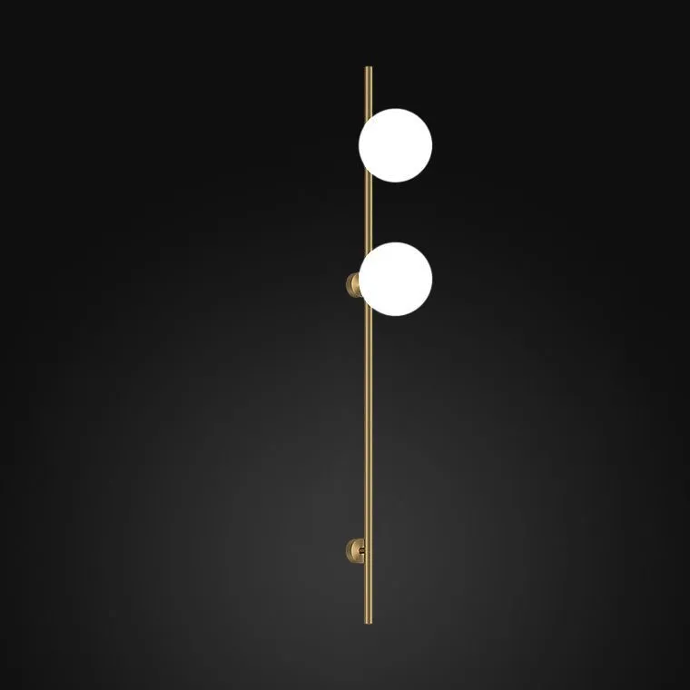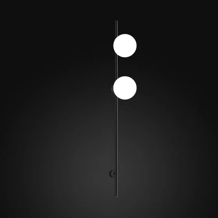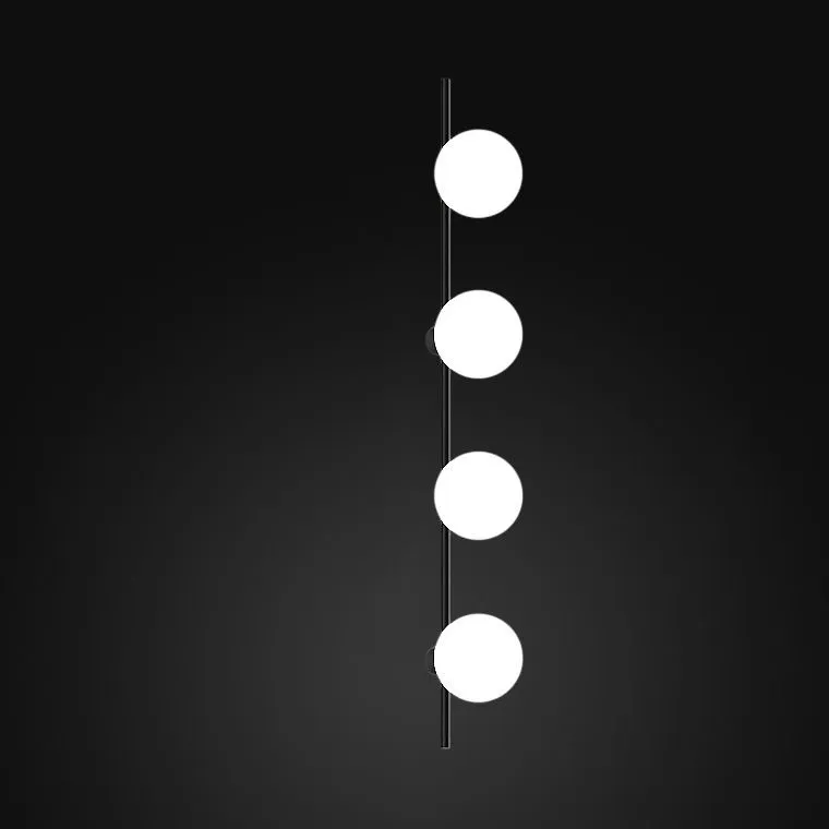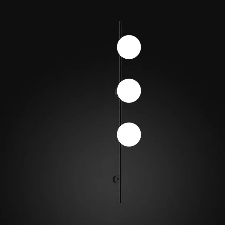 Серия настенных светильников с белыми шарообразными плафонами на высокой стойке