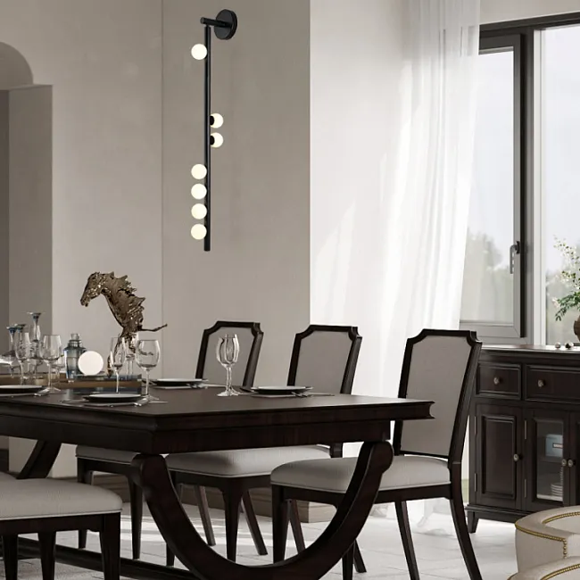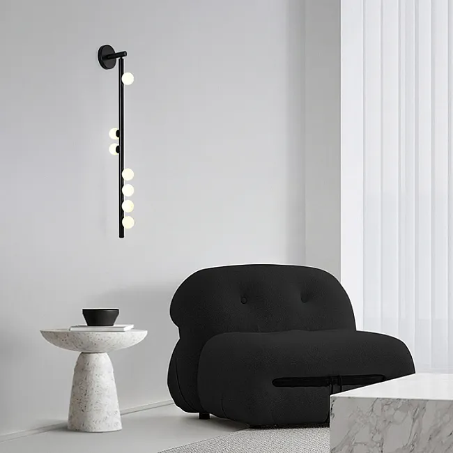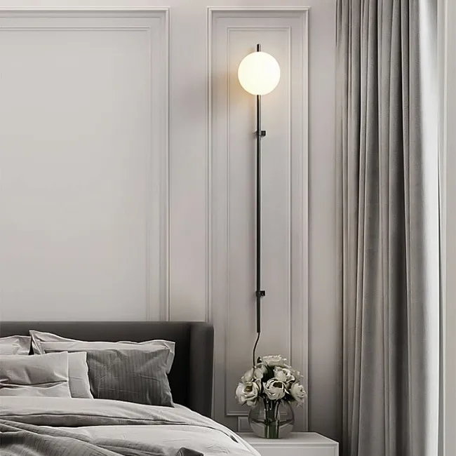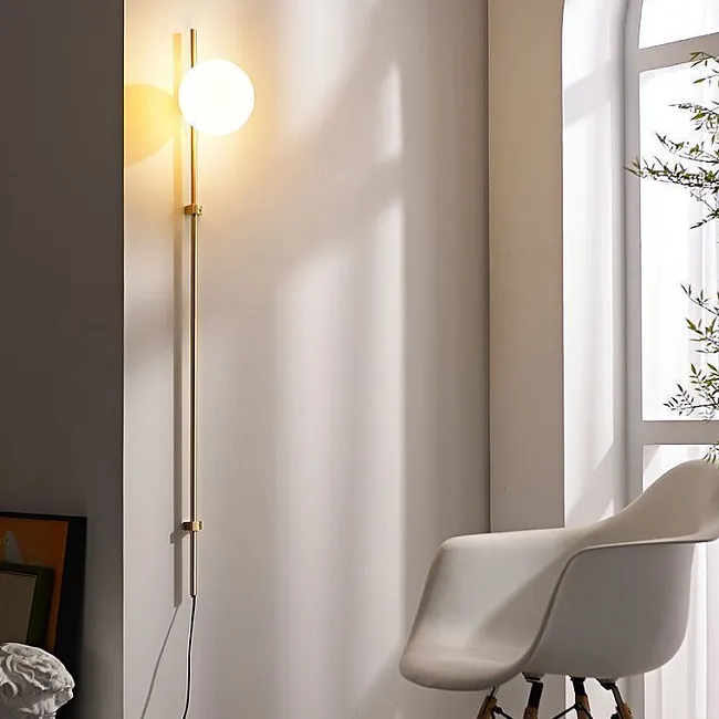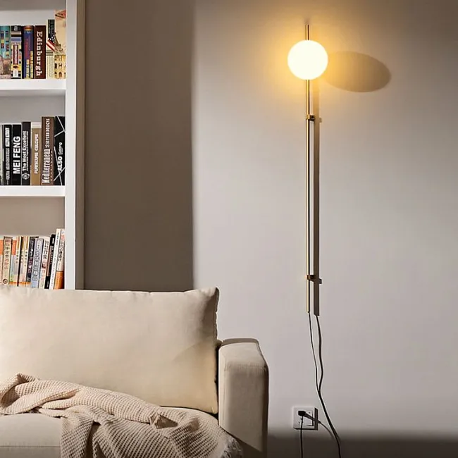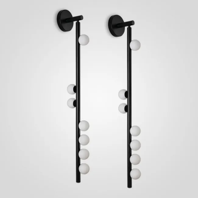 Серия настенных светильников с белыми шарообразными плафонами на высокой стойке