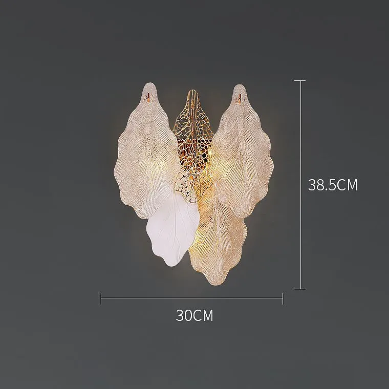 Настенный светильник с декором из подвесок в виде листьев из стекла и металла