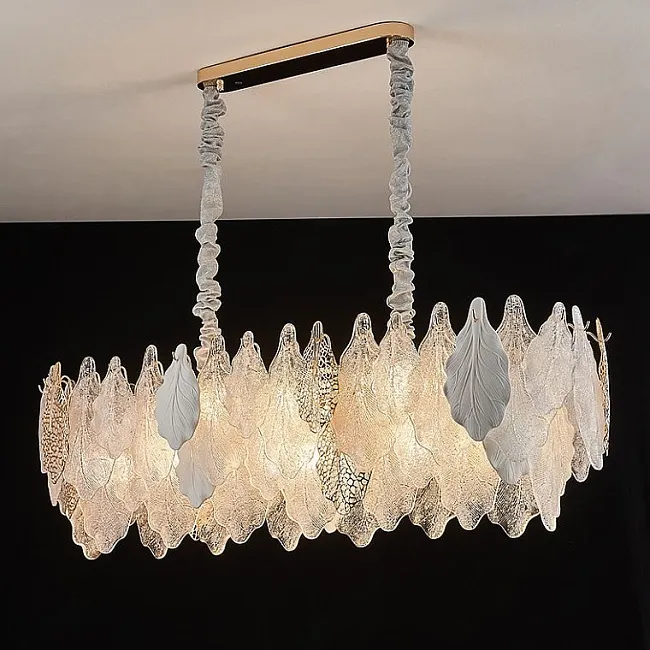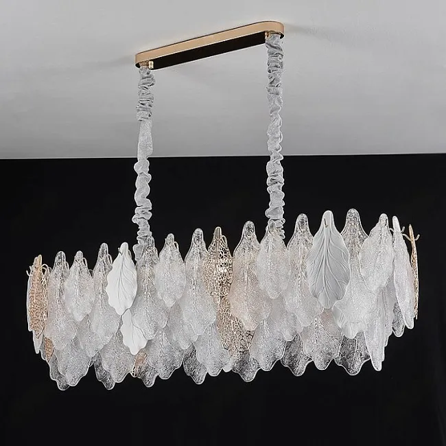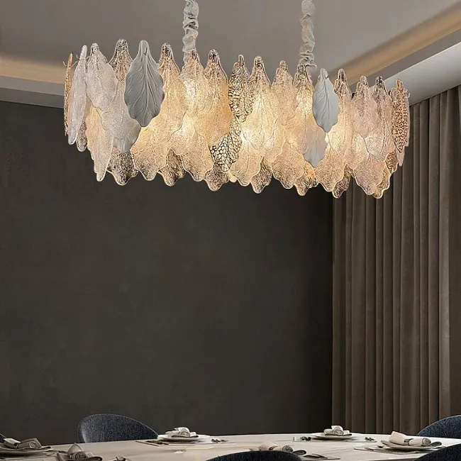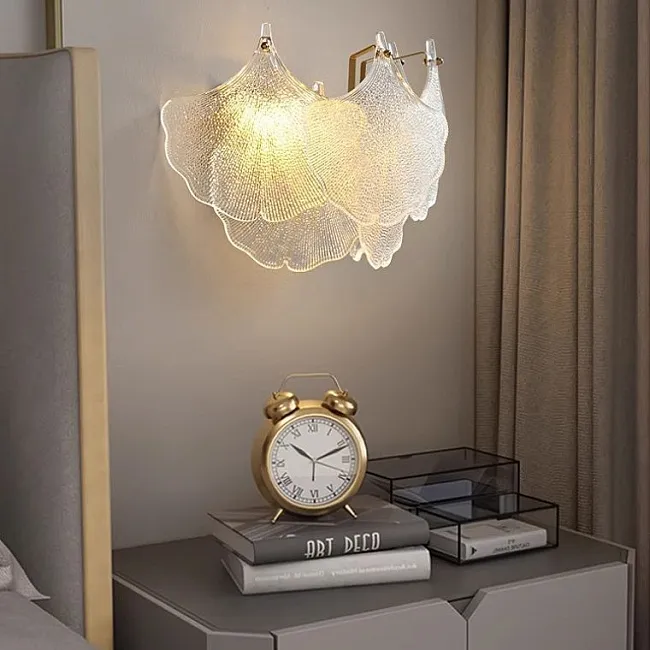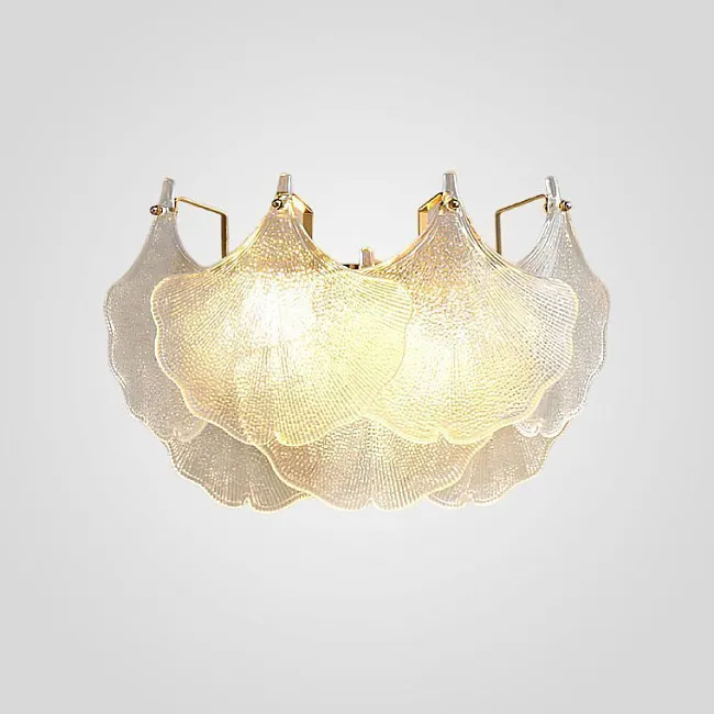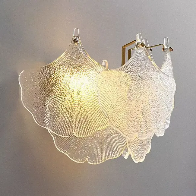 Настенный светильник с декором из подвесок в виде листьев из стекла и металла