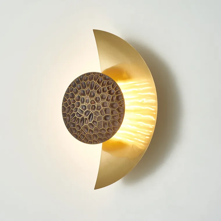 Бра с бронзовым рельефным центром дискообразной формы и металлическим рассеивателем в форме полукруга