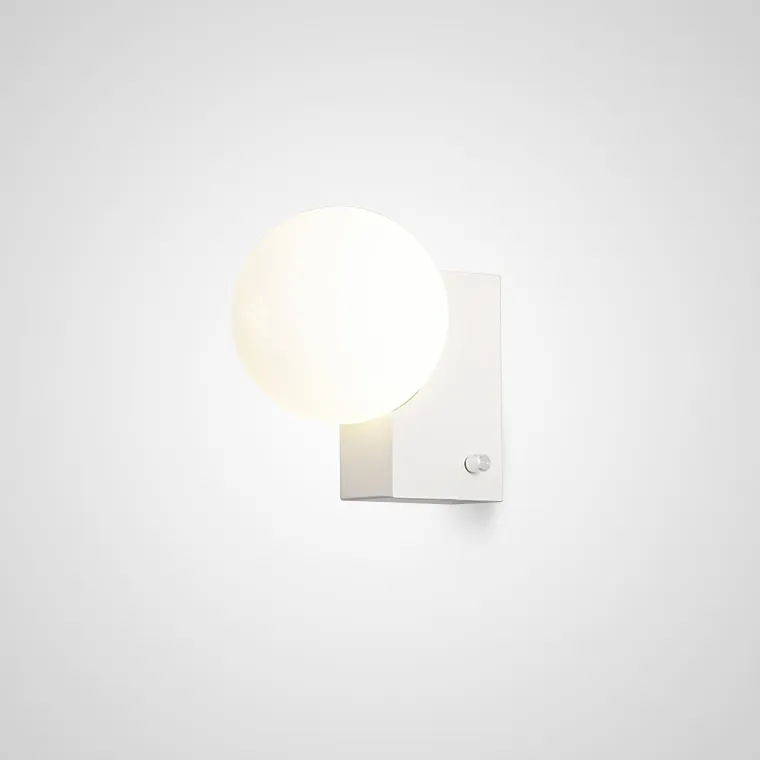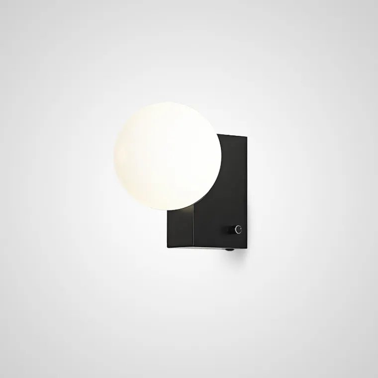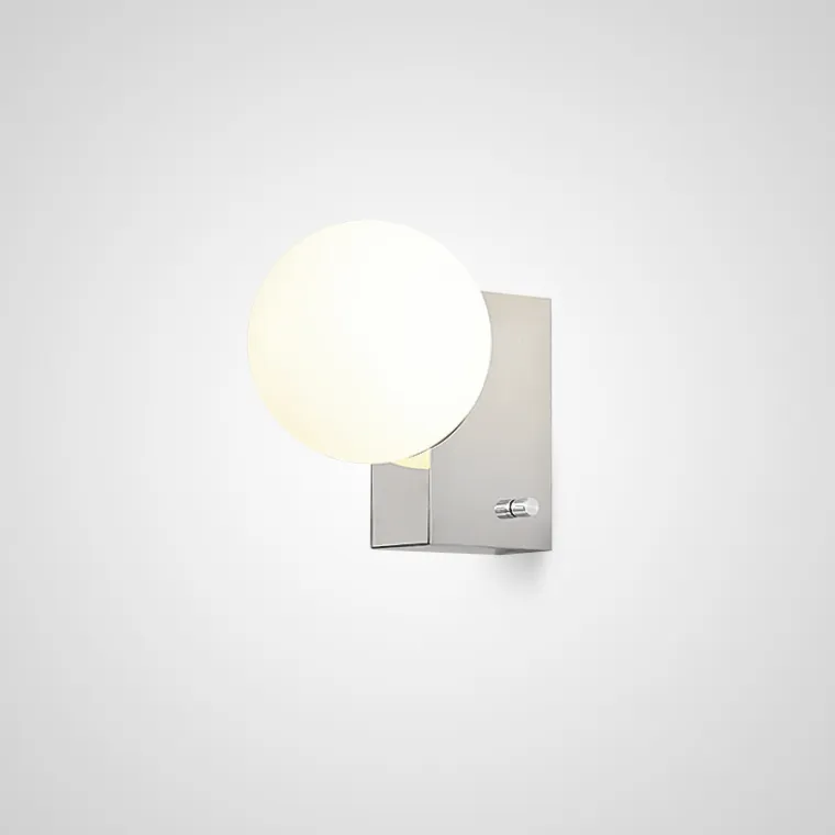 Серия настенных светильников со стеклянным шарообразным плафоном на прямоугольном креплении