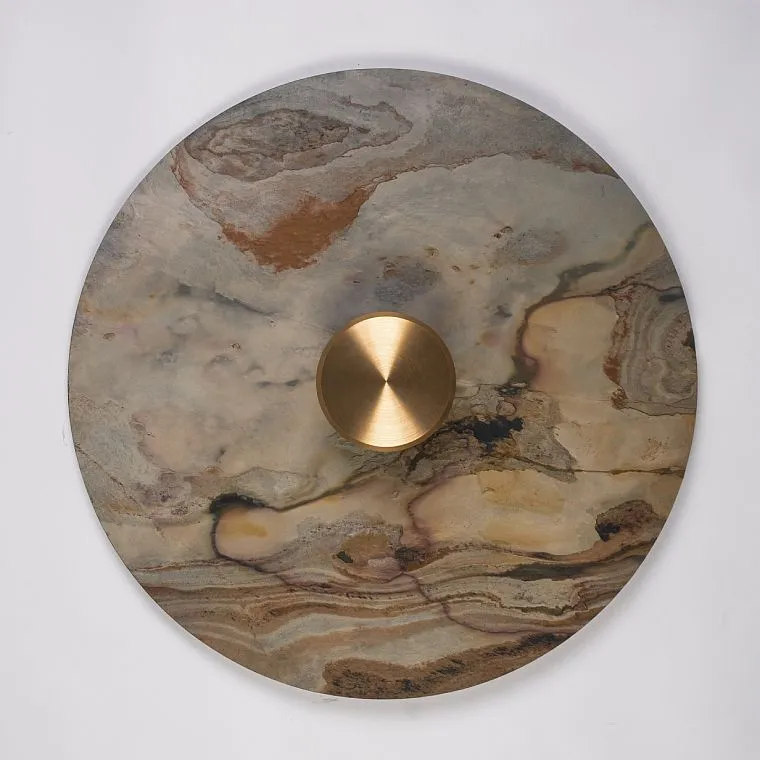 Серия настенных светильников из натурального индийского сланца с уникальным природным рисунком, украшенный центральным латунным элементом, выполнен вручную и сочетает в себе органические текстуры камня