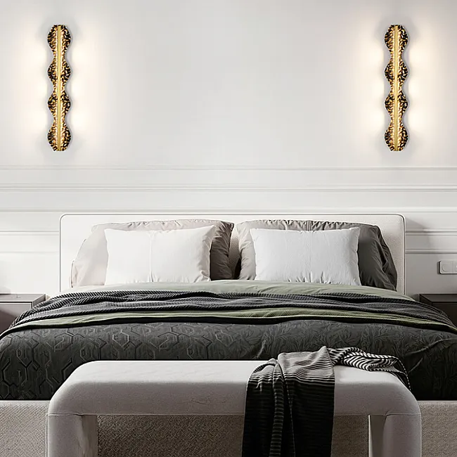 Серия настенных светильников из натурального индийского сланца с уникальным природным рисунком, украшенный центральным латунным элементом, выполнен вручную и сочетает в себе органические текстуры камня