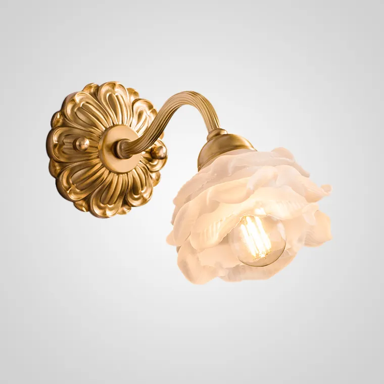 Настенный светильник в латунном корпусе с плафоном ручной работы в виде розы