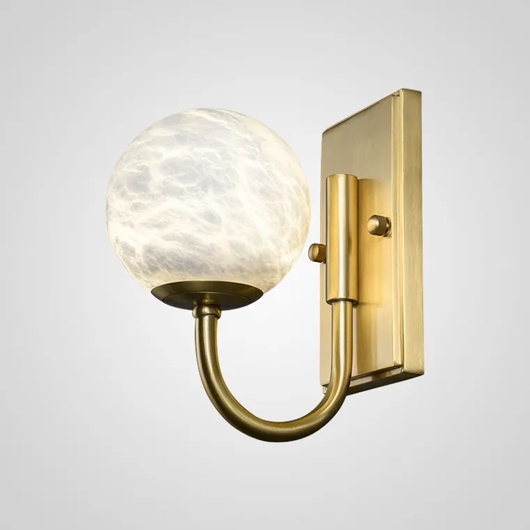 Настенный светильник с шарообразным плафоном из мрамора и металлическим креплением из латуни