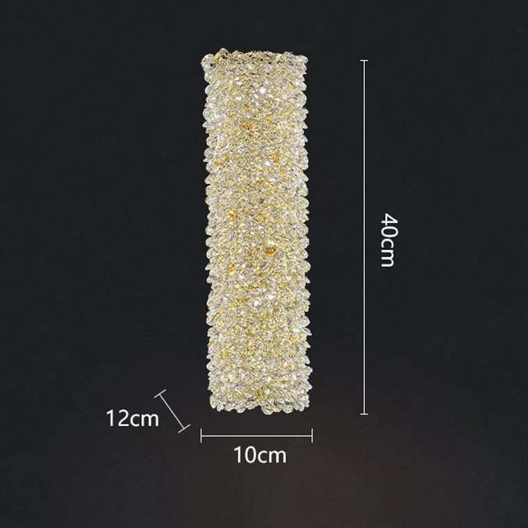 Выводя интерьер на новый уровень роскоши, этот настенный светильник с абажуром из хрустальных элементов и золотым каркасом будет привлекать восхищенные взгляды гостей и создавать атмосферу роскоши и романтики в вашем доме или офисе.