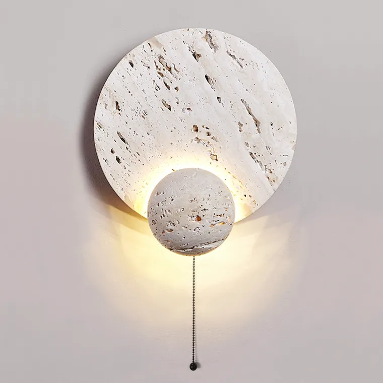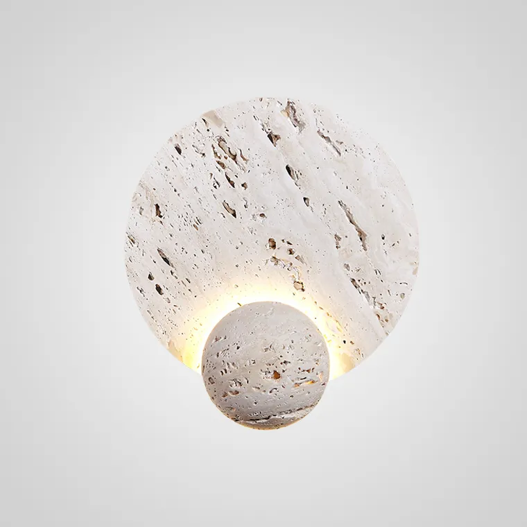 "Погрузитесь в мир природной красоты и изысканности с настенным светодиодным светильником PHANUEL. Этот потрясающий светильник выполнен в виде комбинации двух дисков из натурального травертина, придающего ему уникальность и элегантность.