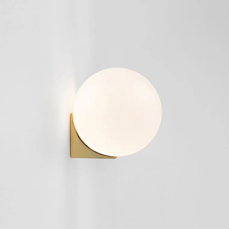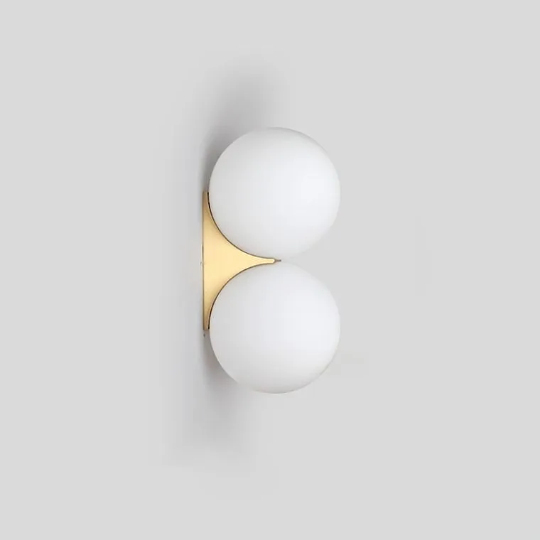 Серия настенных светильников с белыми шарообразными плафонами из стекла на угловом кронштейне