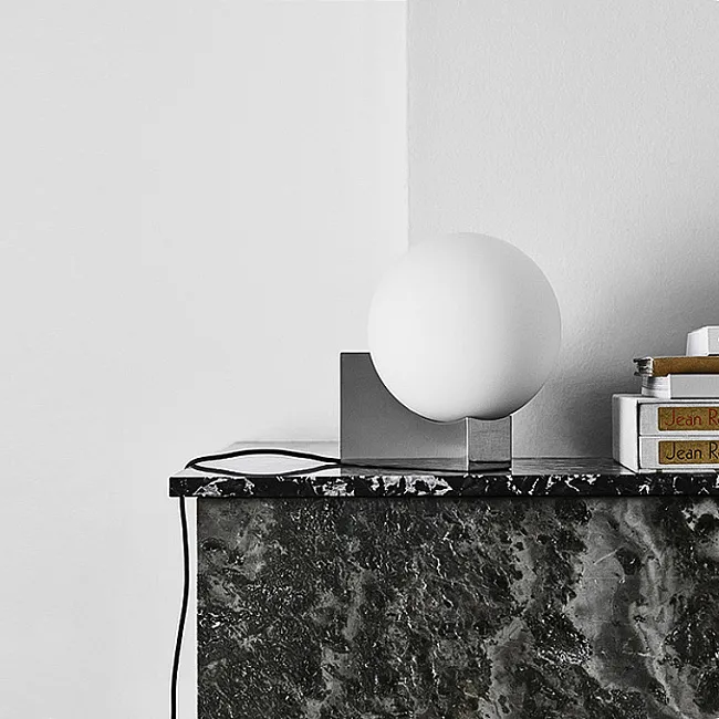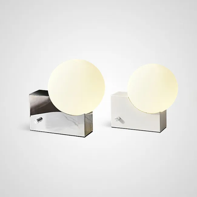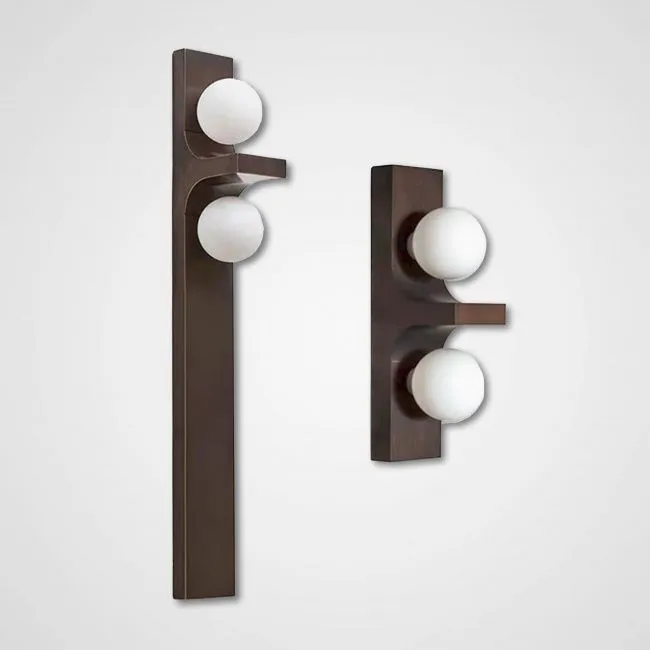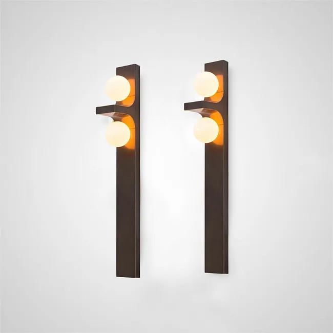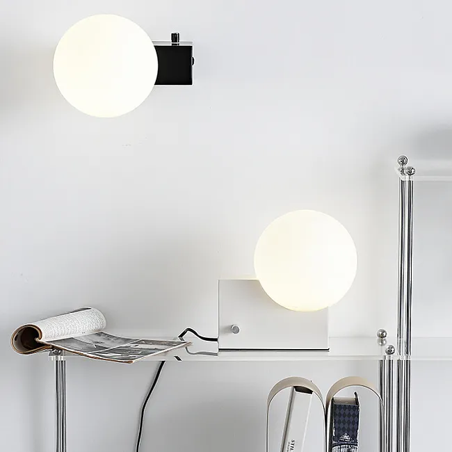 Серия настенных светильников с белыми шарообразными плафонами из стекла на угловом кронштейне