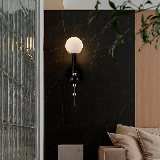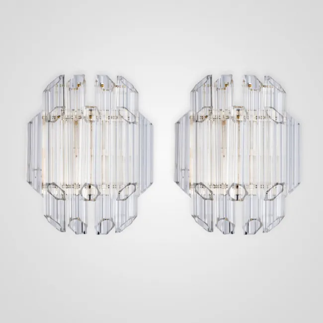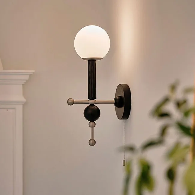 Настенный светильник с металлическим плафоном в виде композиции из трех конусов на латунном кронштейне
