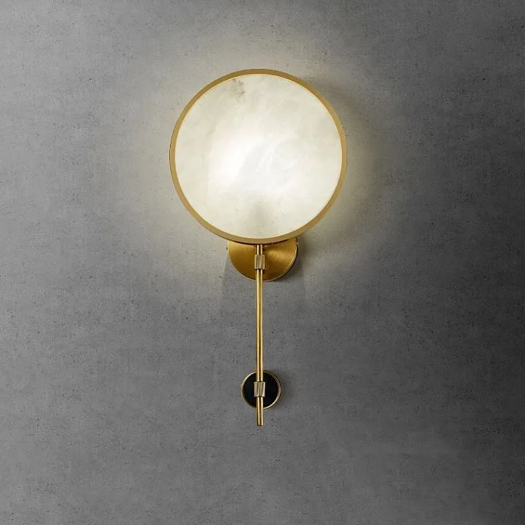Настенный светильник с дисковидным рассеивателем из мрамора на латунной стойке