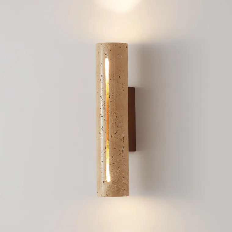 Светодиодный настенный светильник в минималистичном стиле с прорезью на цилиндрическом корпусе из камня травертин