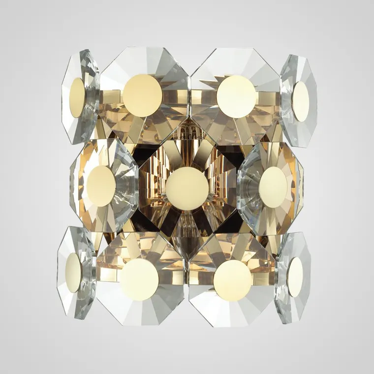 Настенный светильник с ячеистым каркасом и гранеными стеклянными рассеивателями с золотой сердцевиной