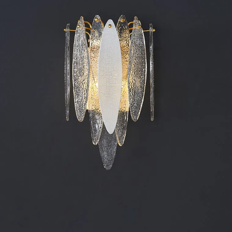 Бра со стеклянными прозрачными подвесками лепестками, цветными вставками с фигурной поверхностью