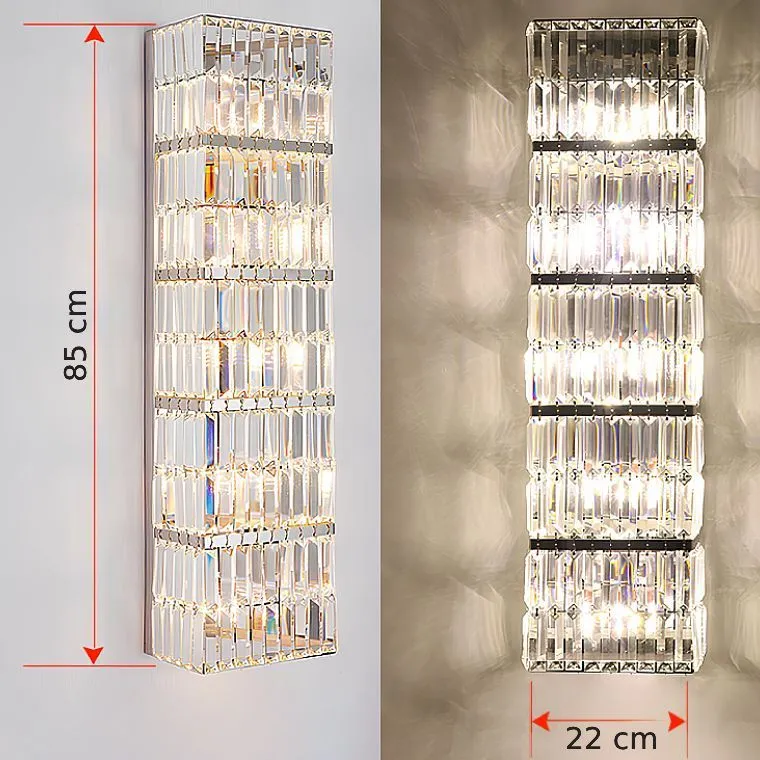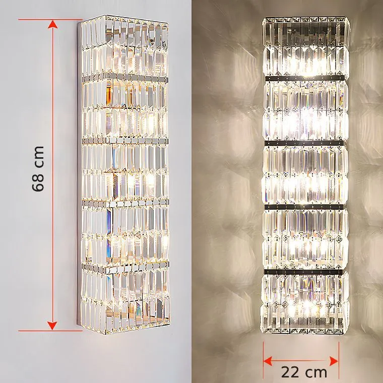 Настенный светильник с прямоугольным плафоном из хрустальных плашек на хромированном основании