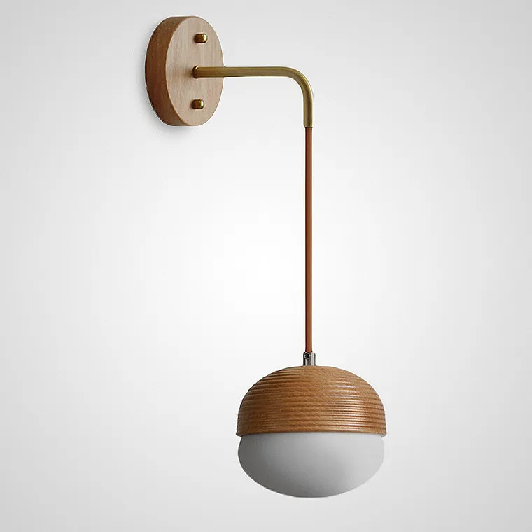 Настенный светильник с подвесным плафоном из белого стекла и дерева каштана