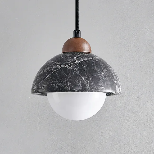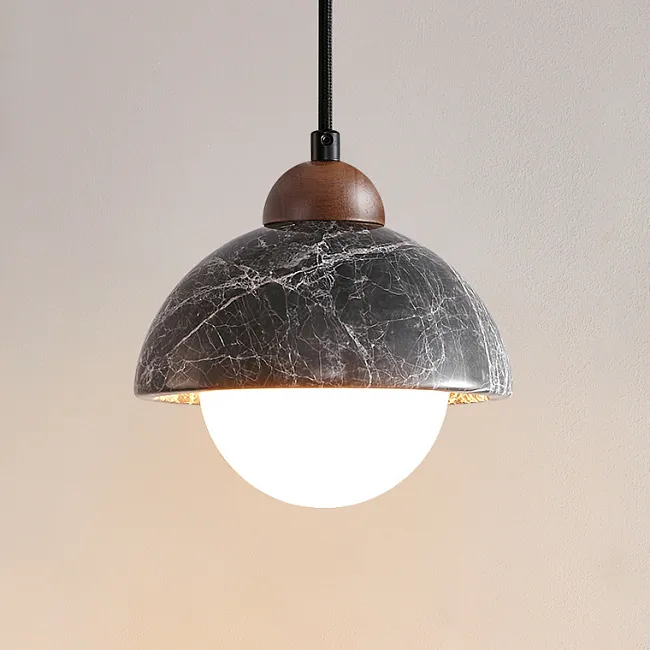 Настенный светильник с подвесным плафоном из белого стекла и дерева каштана
