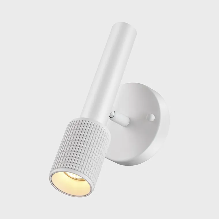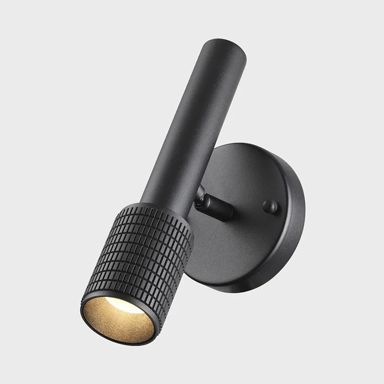 Настенный поворотный светильник в виде цилиндра, с декоративным кольцом и насечками на плафоне