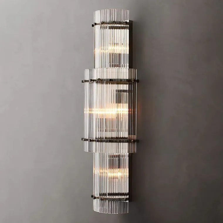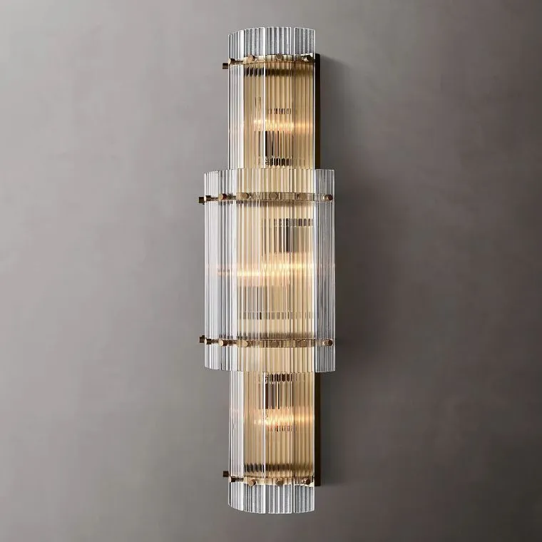 Этот потрясающий настенный светильник словно излучает тепло и уют, словно приглашая вас в объятия комфорта и стиля. Трехъярусный плафон из рельефных стеклянных пластин прямоугольной формы создает игру света и тени, добавляя загадочности и загадочности в любое помещение.