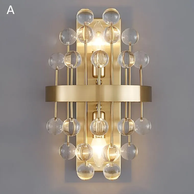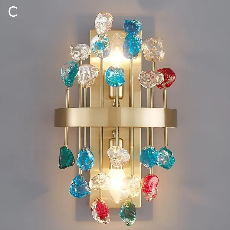 Серия настенных светильников с декоративными стеклянными камнями кубической, шарообразной и неправильной формы