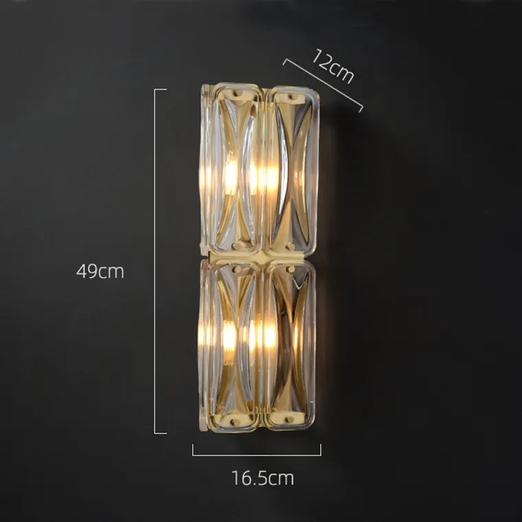 Серия настенных светильников с прямоугольными рассеивателями из выдувного стекла на каркасе в форме треугольной призмы