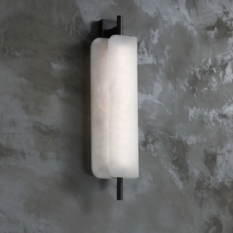 Серия настенных светодиодных светильников с цилиндрическими плафонами внутри прямоугольных рассеивателей из белого мрамора