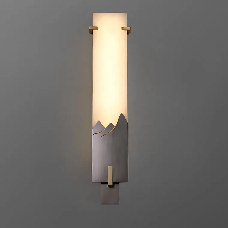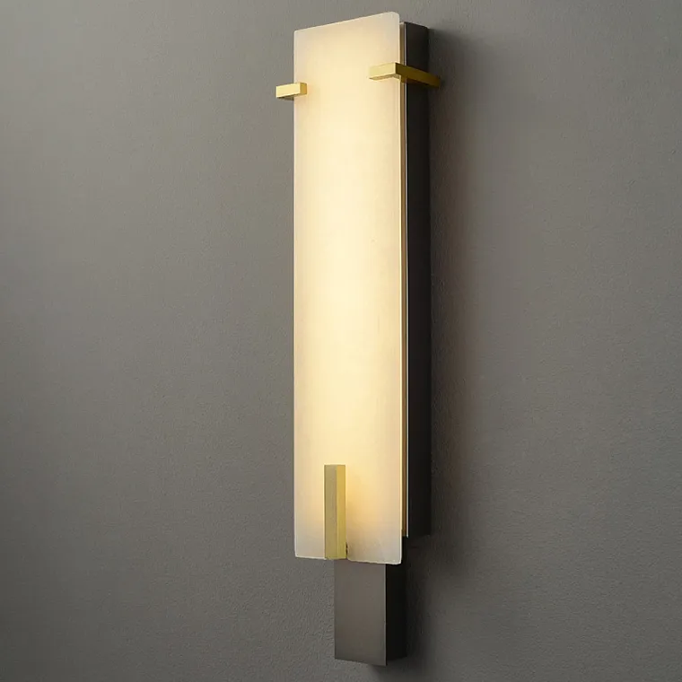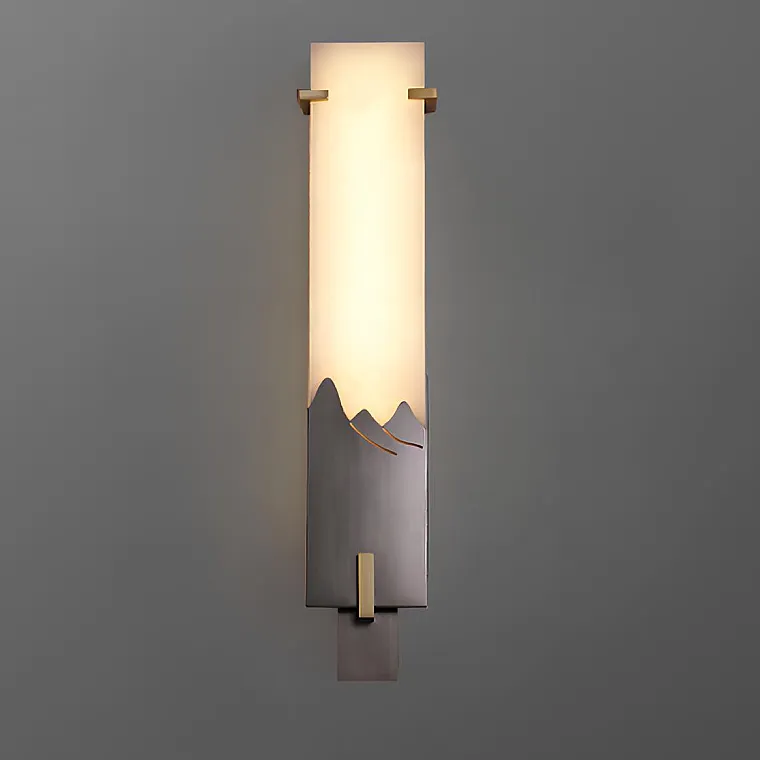 Серия настенных светодиодных светильников с прямоугольным корпусом из цельной мраморной пластины и горным орнаментом