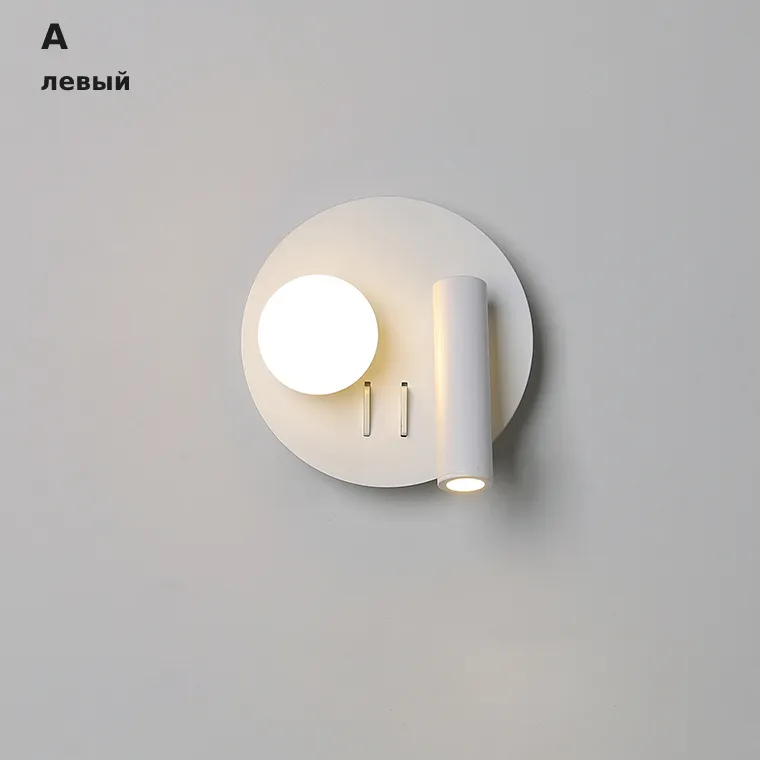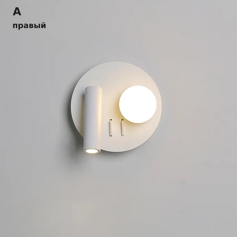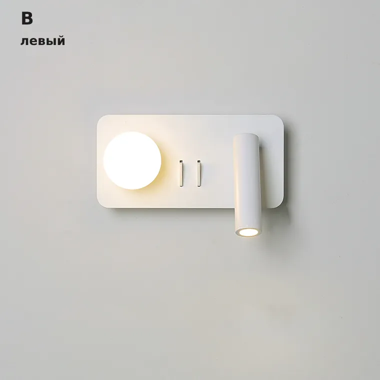 Два плафона расположены на левом или правом основании, доступны две модели: А - с круглым плафоном, В - с прямоугольным. Мощность светильников составляет 6 Вт, цветовая температура света – теплый.