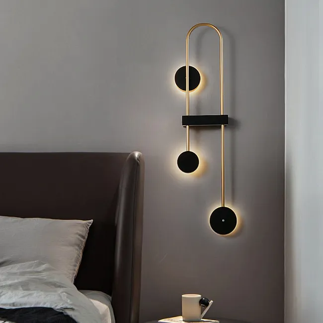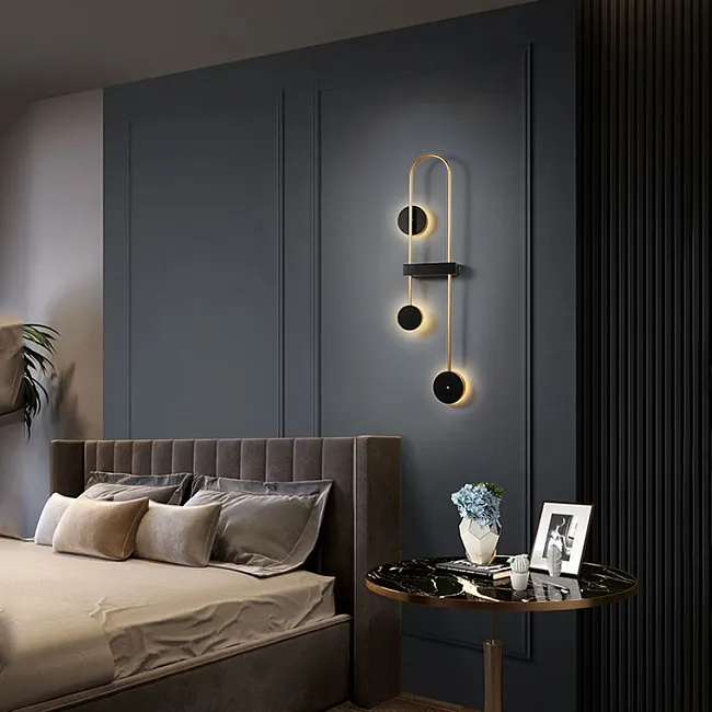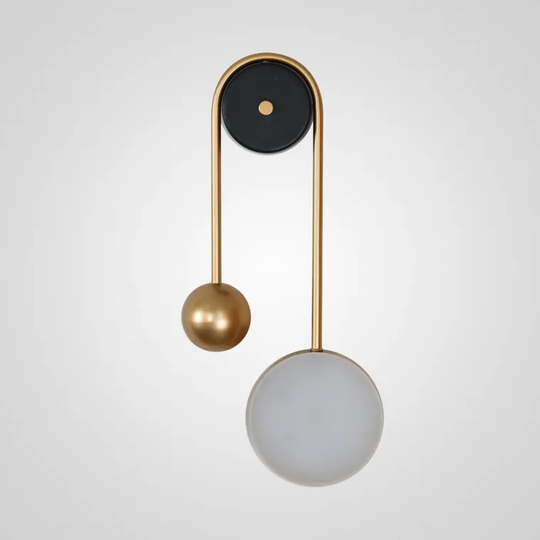 Настенный светильник в современном стиле с плафоном в виде диска и золотым шаром в виде дополнительного декора
