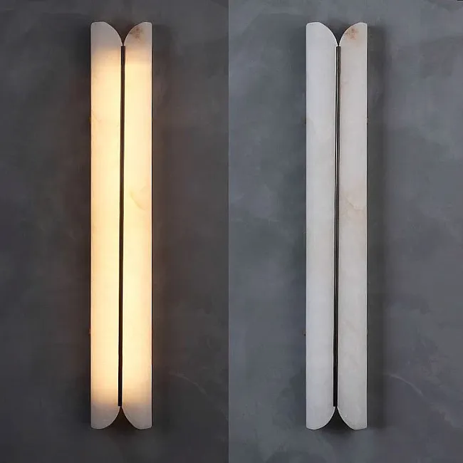 Настенный светильник с мраморным плафоном в форме кристалла на прямоугольном основании