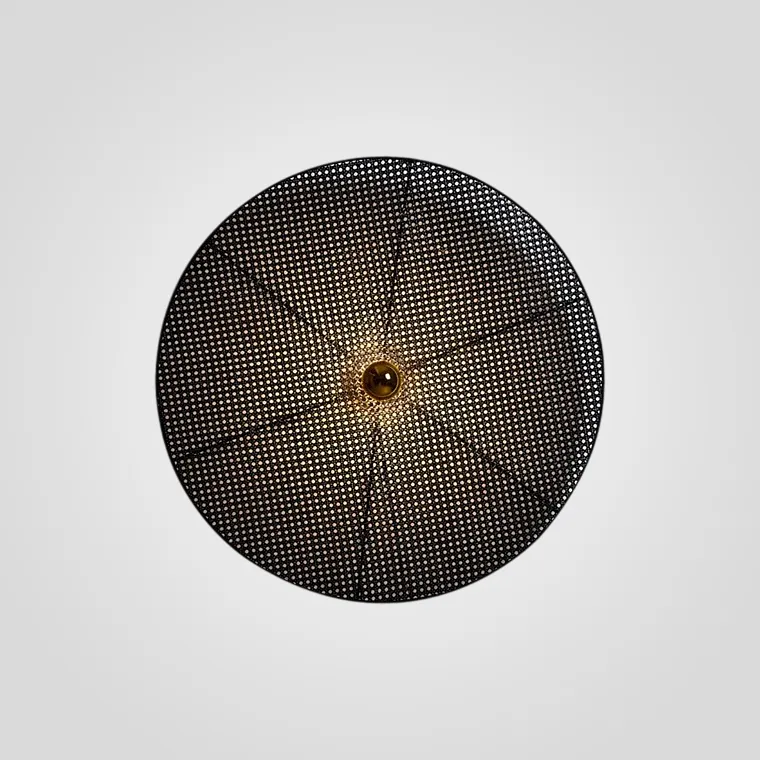 Серия настенных светильников с дисковидными рассеивателями из ротангового плетения