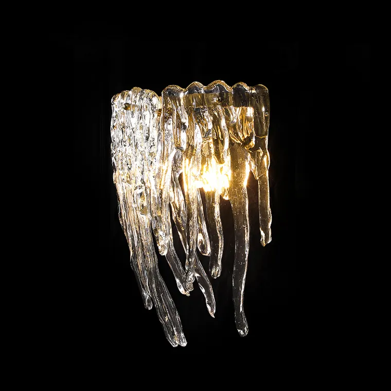 Бра со стеклянными пластинами в виде тающего льда – это трендовый светильник 2021. Природный мотив из стекла в интерьере сделает его актуальным и необычным. Светильник отлично подчеркнет форму освещаемого объекта (комод, книжный шкаф, кресло), а в сочетании с основным светом сделает общую атмосферу мягкой и расслабленной. Хорошо будет смотреться как спальне, так и гостиной.