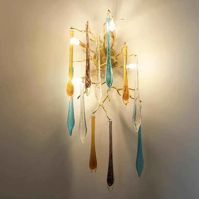 Настенный светильник с цветными удлиненными подвесками в виде массивных капель