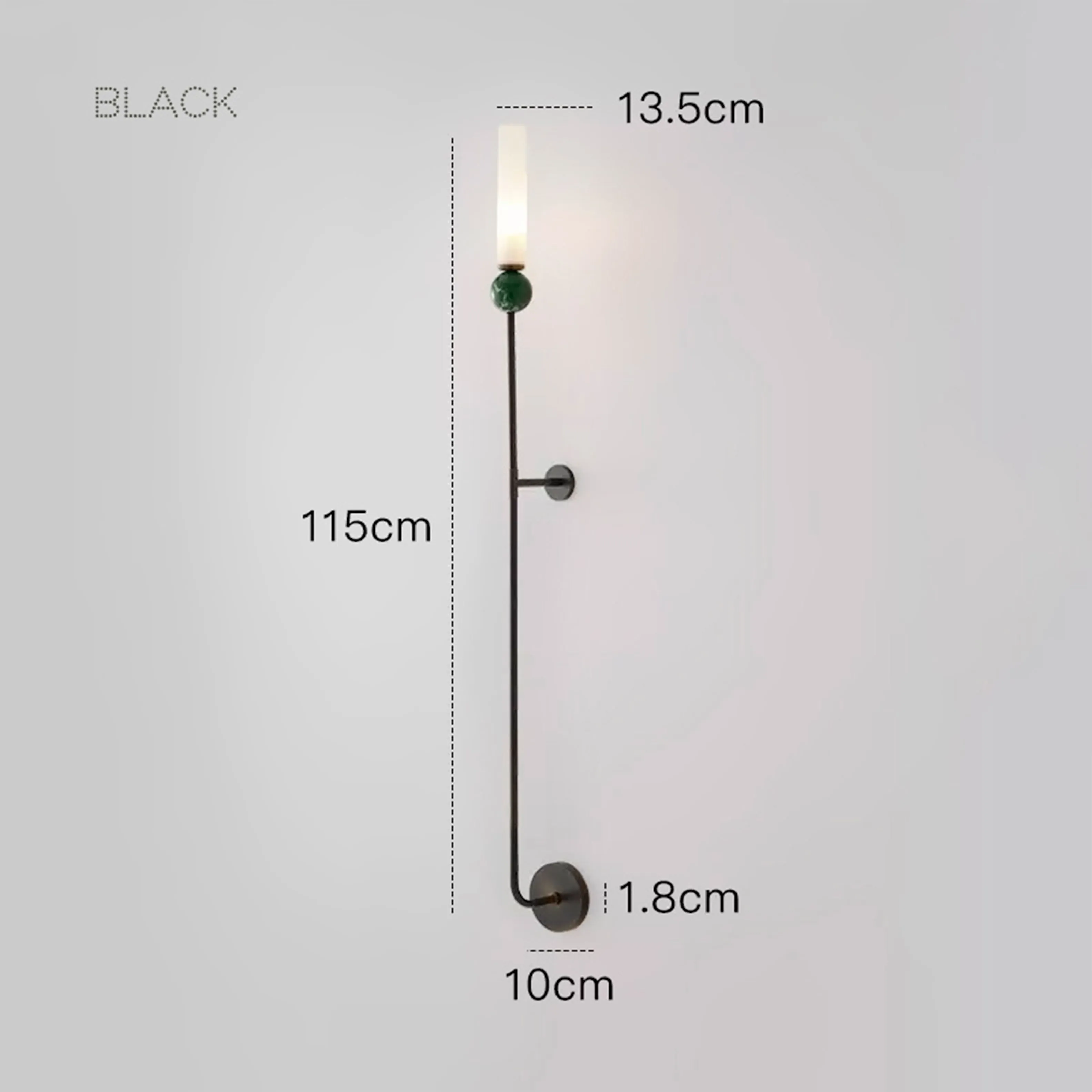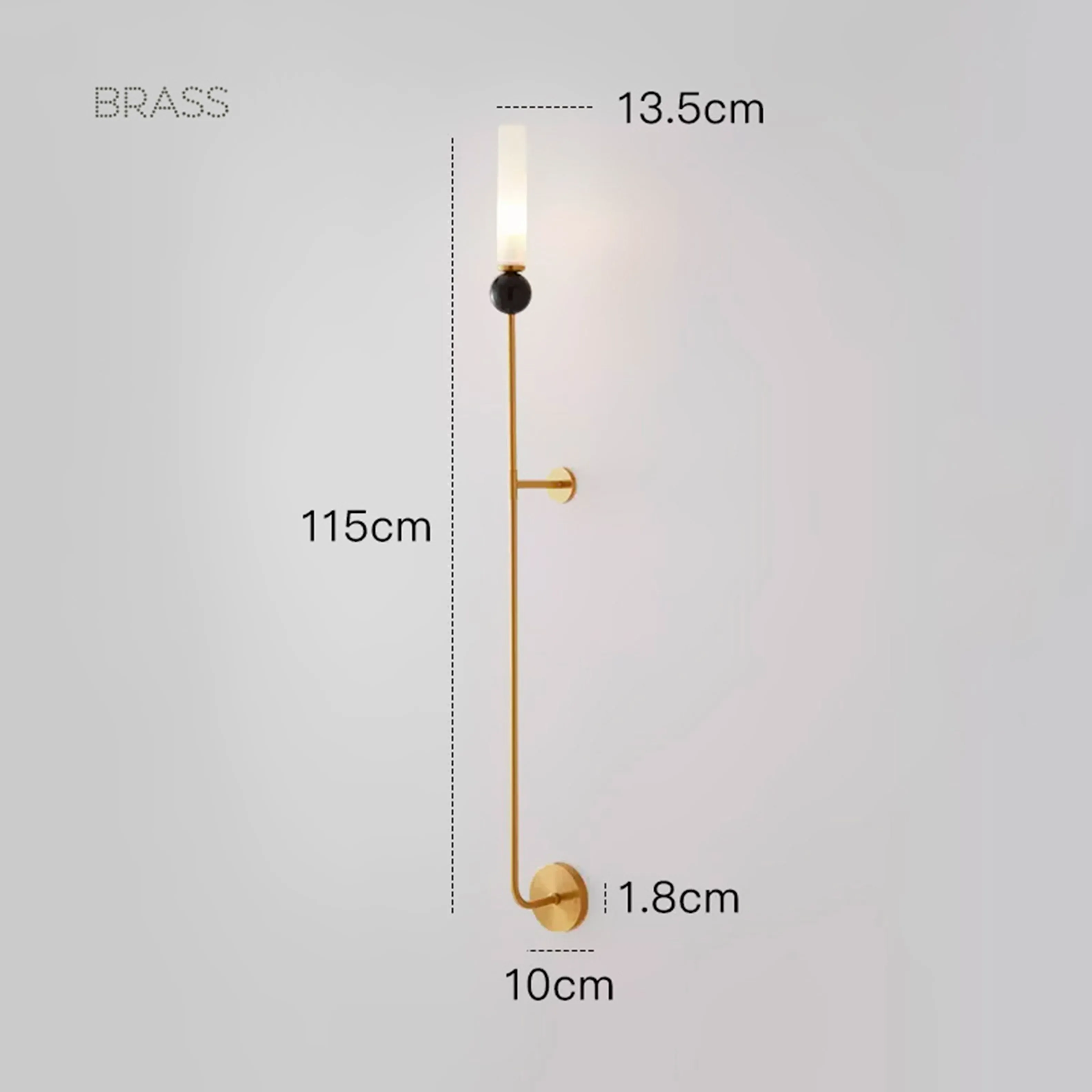 Размер бра составляет 10×115 см. Благодаря компактным размерам, оно не займет много места на стене и при этом обеспечит достаточное освещение. Диаметр настенного крепления составляет всего 10 см, что позволяет легко установить бра на любую поверхность. Вылет от стены составляет 13.5 см, что обеспечивает оптимальное расстояние между источником света и поверхностью, на которую он направлен.