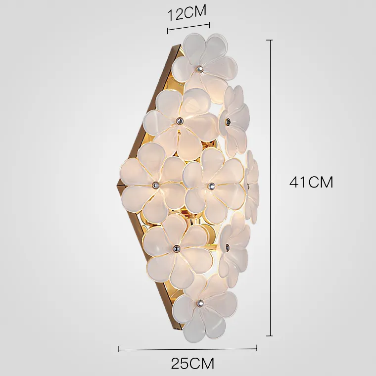Настенный светильник на ромбическом основании с цветочным декором из молочного стекла