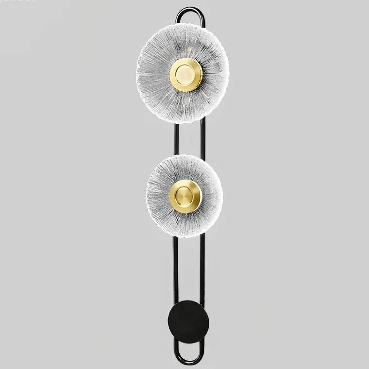 Скульптурные плафоны, выполненные из рельефного стекла, напоминают распустившиеся бутоны, оживляющие интерьер игрой света и тени. Латунная сердцевина светильников придает им изысканное благородство, а вытянутый овальный корпус в благородном черном оттенке добавляет глубину и выразительность.